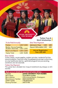 AUW introduced merit scholarships for students of Bangladesh in the Fall of 2024. This scholarship is based on their GPA in SSC and HSC exams, grades and points for A Level and O level/ IB students. Below are the details: