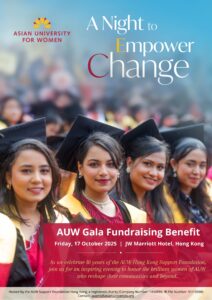 Asian University for Women Support Foundation (Hong Kong) Limited is a registered charity in Hong Kong. Company Number is 1458886 and IRD File Number is 91/10508. For donations in Hong Kong, please contact give(at)asian-university.org.